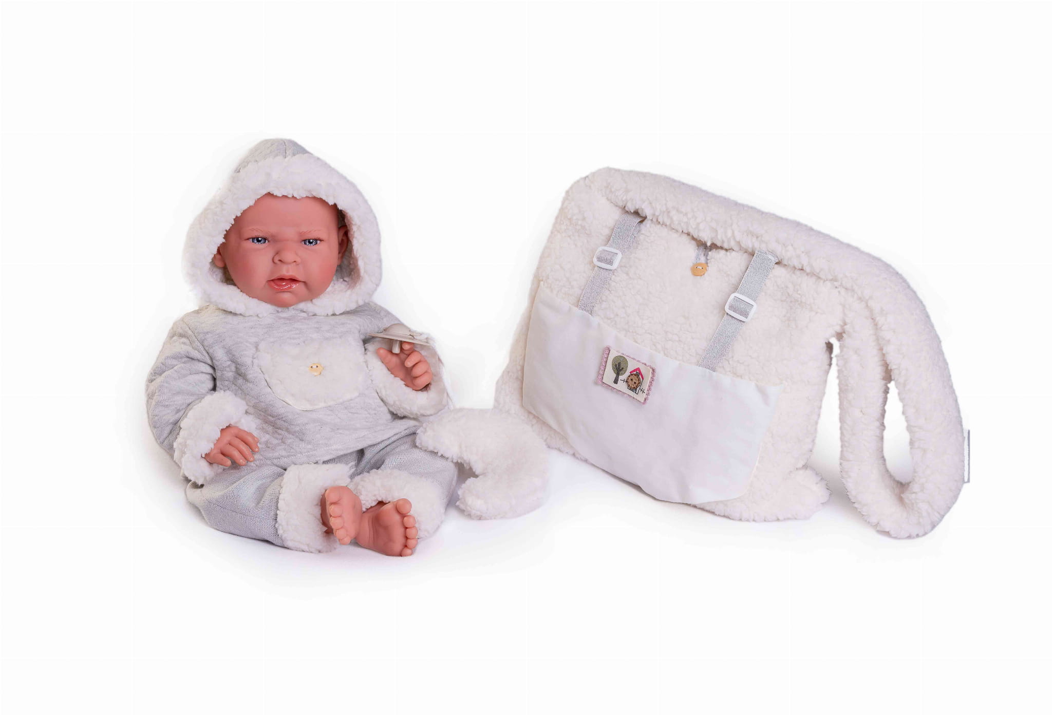 Lalka Antonio Juan Lea con bolso portabebé de borreguillo 33346